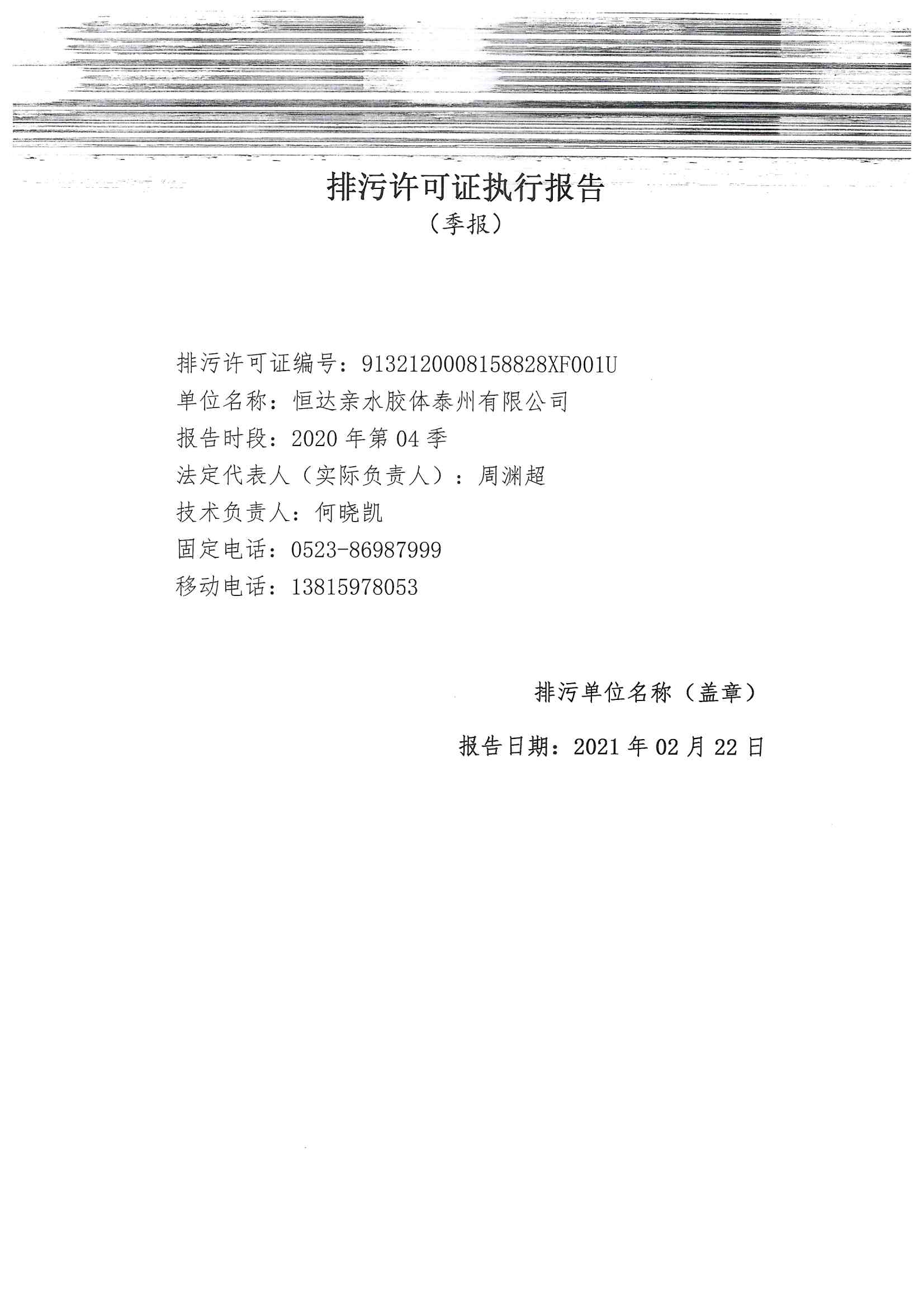 2020四季度排污許可執(zhí)行報告