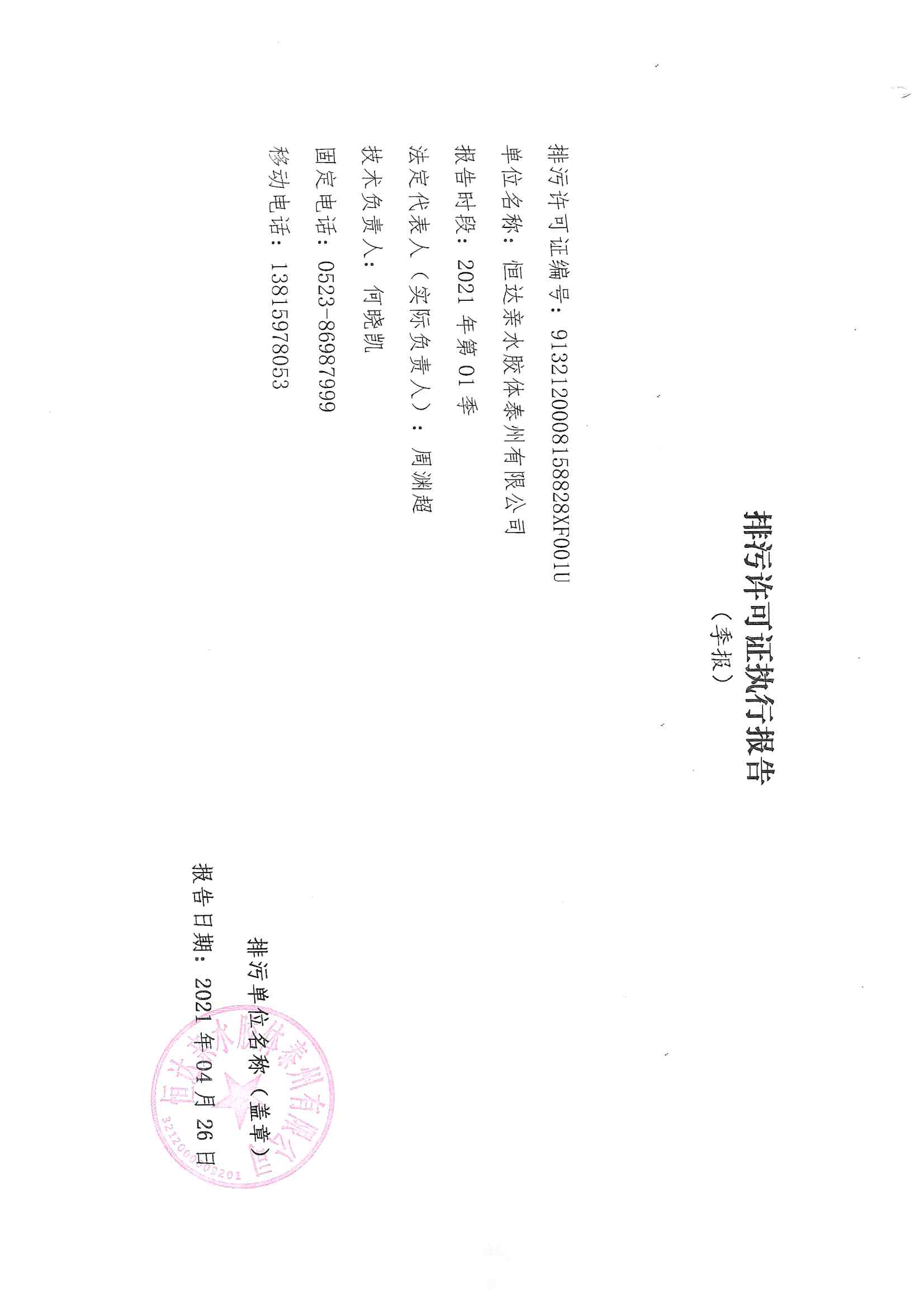 2021排污許可證1季度報